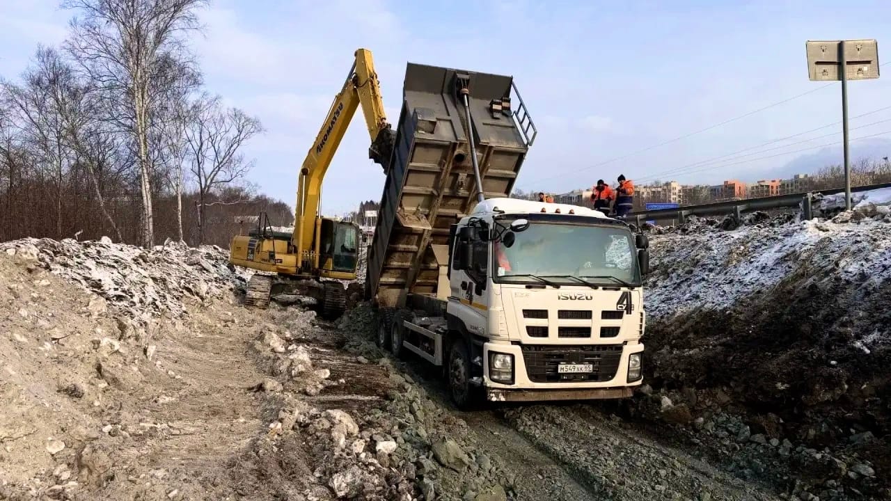 Благодаря национальному проекту «Инфраструктура для жизни» в Сахалинской области на 2-километровом участке Корсаковской трассы от поворота на автодорогу Лиственничное – Охотское до УТЦ «Восток» продолжаются работы по уширению земляного полотна для организации движения транспорта в четыре полосы.